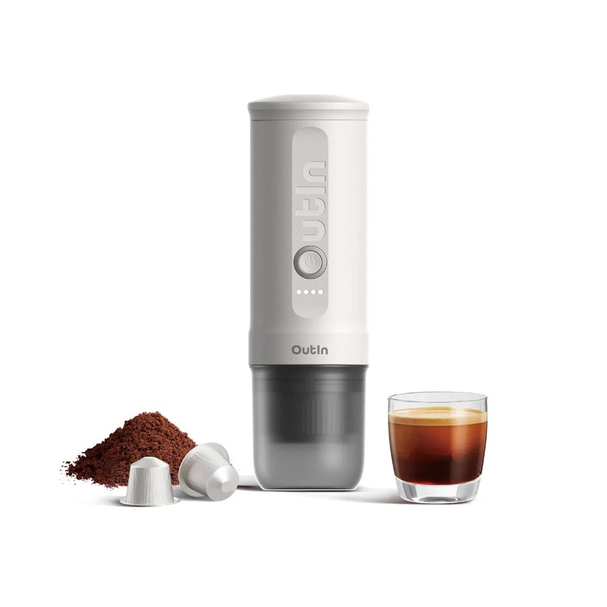The Outin Nano is a portable, cordless coffee maker that will satisfy the needs of any espresso lover - but not only! The device weighs just 670 g, so you can take it anywhere you want. The 7,500 mAh battery allows you to make as much as 5 cups of coffee using cold water or more than 200 cups hot without recharging. Thanks to the quick heat-up function, you can enjoy delicious espresso in just 200 seconds, while the 20 bar pressure and up to 92°C temperature guarantee fluffy froth. The machine is compatible with both ground coffee and capsules.
